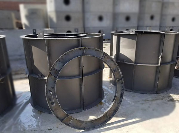 地下井模具便于安裝和焊接,是一個(gè)整塊的鋼板材料設(shè)計(jì)出來(lái)的,密封性強(qiáng),使用效率高。規(guī)格型號(hào)多樣,主要由主板:4mm,勒筋:8mm 。圓形井體鋼模具尺寸:常規(guī)檢查井模具高150cm,內(nèi)徑100cm,外徑120cm,井口直徑70cm,分兩節(jié)組成等。