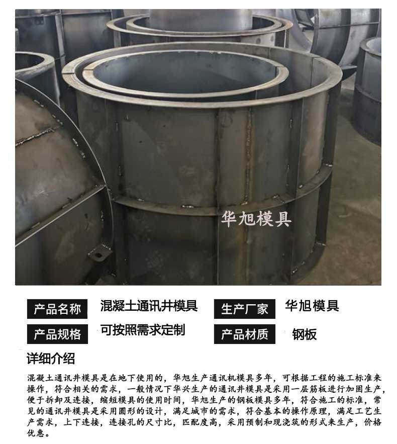 客戶反饋:經(jīng)過多家挑選后來選擇了華旭的混泥土通訊井模具,可重復(fù)使用效率高,給我們的施工帶來便利,拼接簡單,堅(jiān)固耐用,而且華旭生產(chǎn)的通訊井模具筋板密度大,接口處平滑,滿足工程需求,價格也不貴,整體來說使用了這么久還是不錯的。