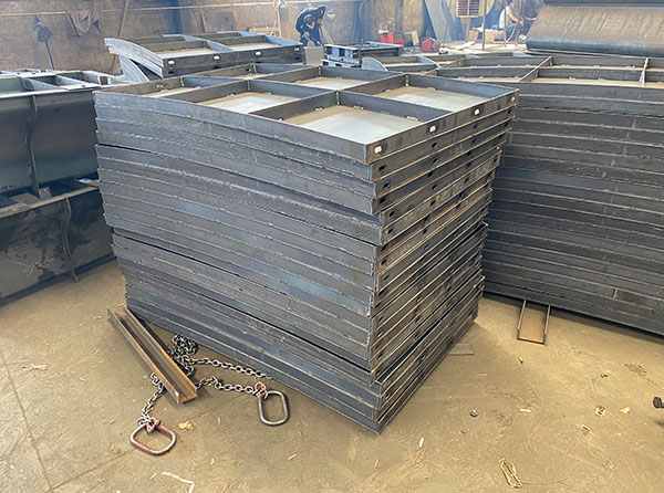 由鋼模板制成,其厚度加厚,面板大于5mm,筋板大于6*8。這樣體積大,可以承受的能力也強(qiáng)。構(gòu)造采用拼接式,可以加快脫模速度。