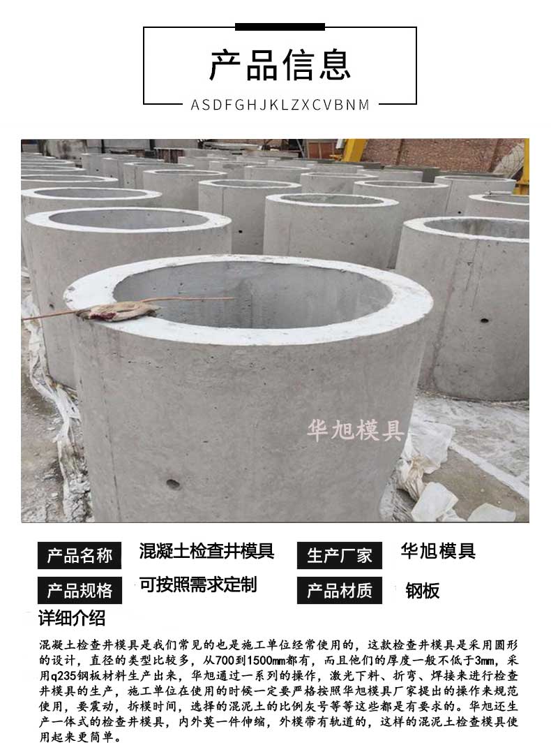 華旭常見的是采用內(nèi)外模為5mm的鋼板生產(chǎn)出來,固定而成的。