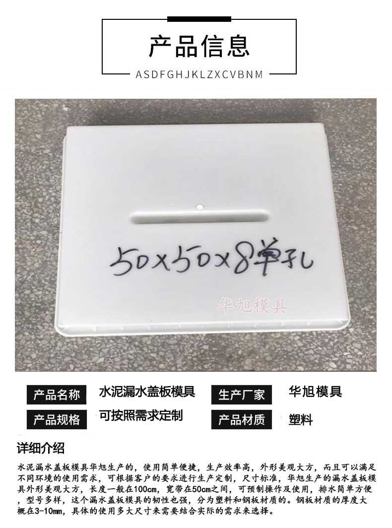 水泥漏水蓋板模具性能穩(wěn)定,排水簡單方便,使用范圍廣,而且類型多樣,也有采用防滑設計出來的蓋板模具。