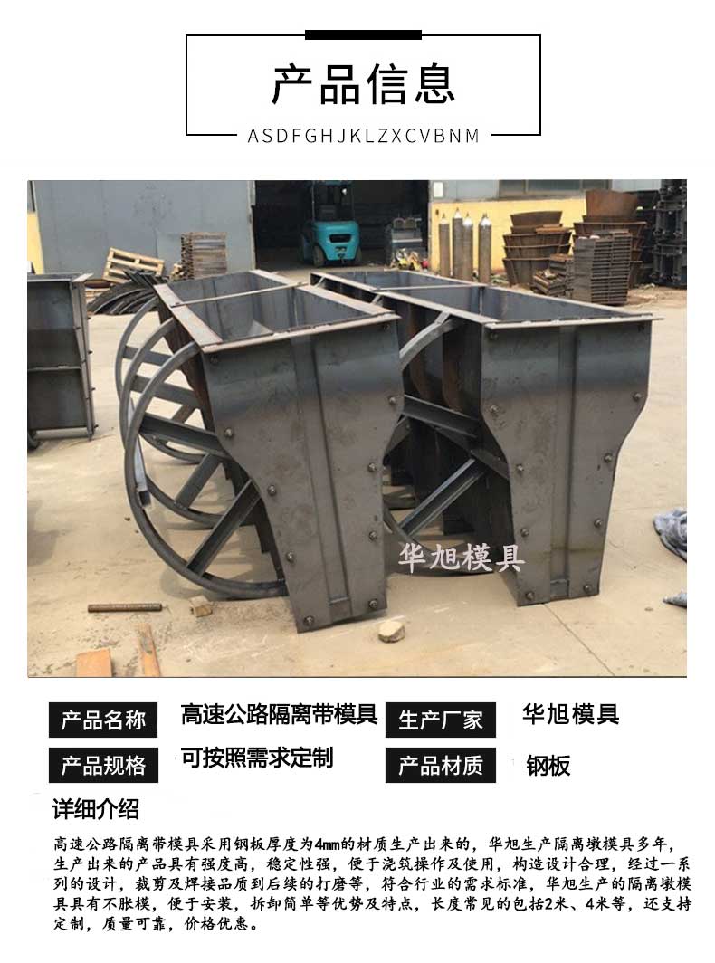 隔離帶模具預(yù)制和現(xiàn)澆筑使用,符合基本的標(biāo)準(zhǔn)需求,容易成型。
