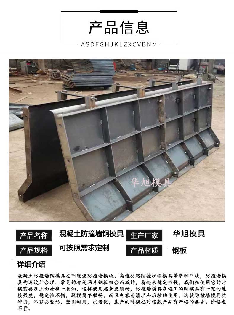 華旭生產(chǎn)的防撞墻模具內(nèi)壁平坦,可組合使用,厚度等都可調(diào)節(jié)。