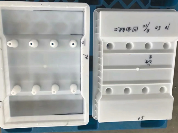4、兩個模具組裝到一起使用,中間是長的空心的,兩側(cè)都有向內(nèi)的凹槽,節(jié)約原材料而且便于脫模。