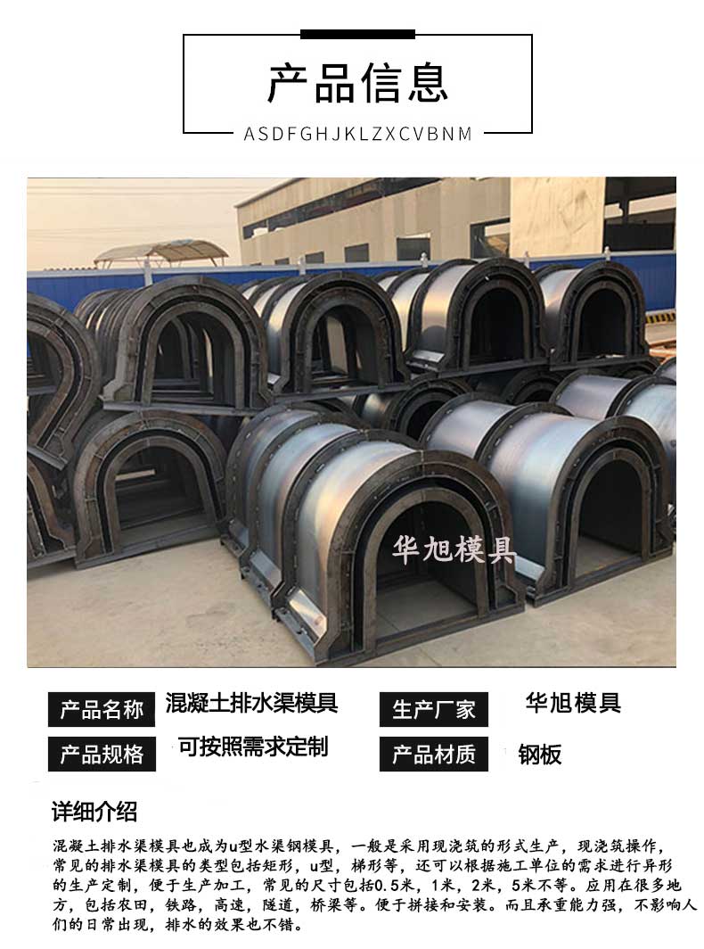 華旭可根據(jù)客戶的需要生產(chǎn)各種規(guī)格型號的混泥土排水渠模具,u型水渠鋼模具,焊接簡單,耗損低,客戶的口碑不錯,值得信賴。